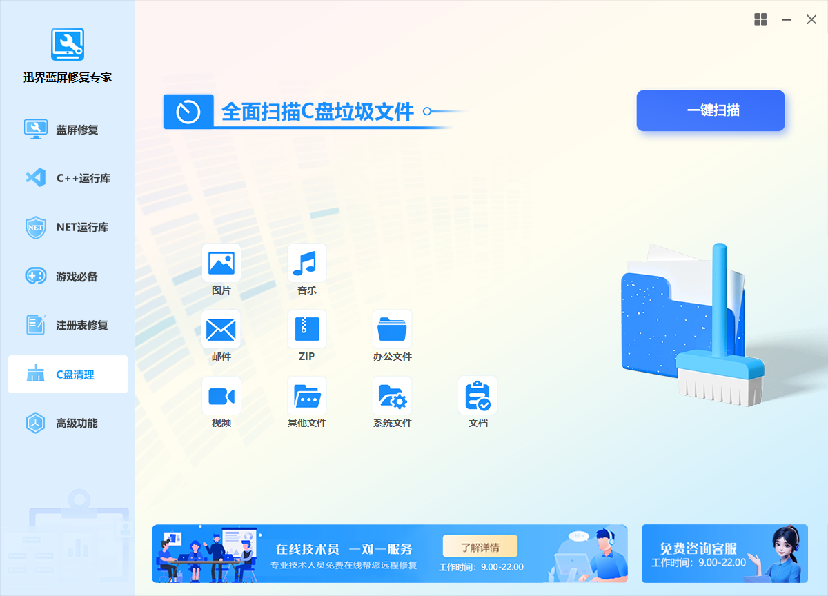 电脑蓝屏,提供专业修复方案,生成详细修复报告,支持修复电脑蓝屏和多种电脑系统错误问题